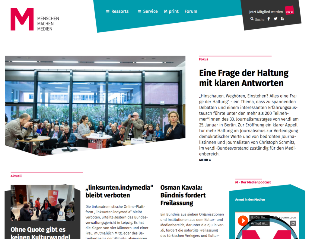 Menschen Machen Medien ist das medienpolitische Onlinejournal des Fachbereichs Medien und der Deutschen Journalistinnen und Journalisten-Union in der Vereinten Dienstleistungsgewerkschaft ver.di. und erscheint viermal im Jahr auch als Printausgabe.