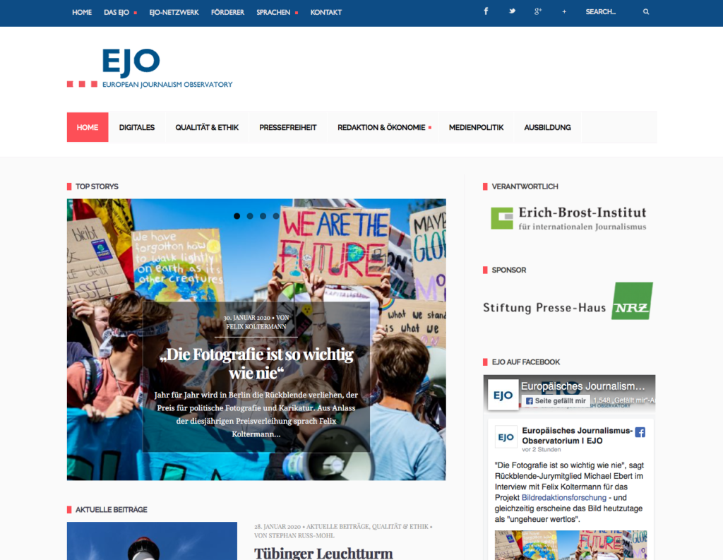 Das European Journalism Observatory EJO ist ein Netzwerk von hauptsächlich europäischen Forschungsinstituten, die mit der Beobachtung von Journalismus-Kulturen in Europa einen Beitrag zu Qualitätsdebatte leisten wollen. Der deutsche Zweig wird vom Dortmunder Erich-Brost-Institut für internationalen Journalismus getragen und betreut.