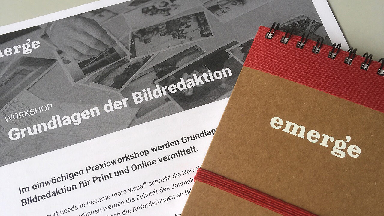 Die emerge Akademie für visuellen Journalismus bietet den Kurs „Grundlagen der Bildredaktion“ mehrmals im Jahr an. Neben Kevin Mertens sind wechselnde Gastdozent*innen eingeladen. Die fünf Tage kosten 490,- Euro. Daneben werden der Dreitagesworkshop „Visual Story Production“ (350,- Euro) sowie Einzelcoachings und Inhouse-Trainings angeboten. Die Akademie ist ein Non-Profit-Unternehmen und nutzt die Einnahmen zur Finanzierung des Online-Magazins.